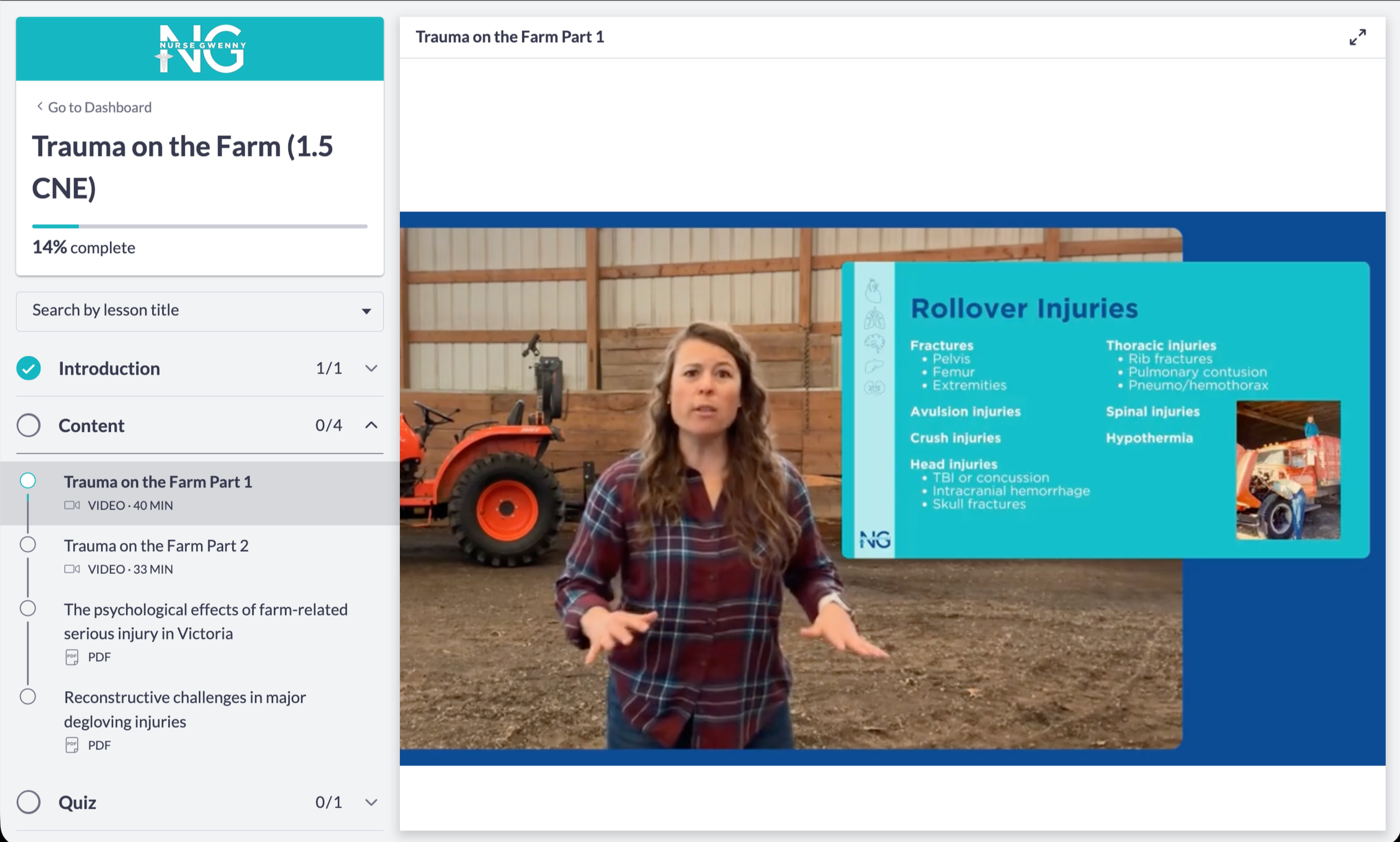 Click the image above to preview of Trauma on the Farm, a 1.5 CNE course found in The Nurse Gwenny Library